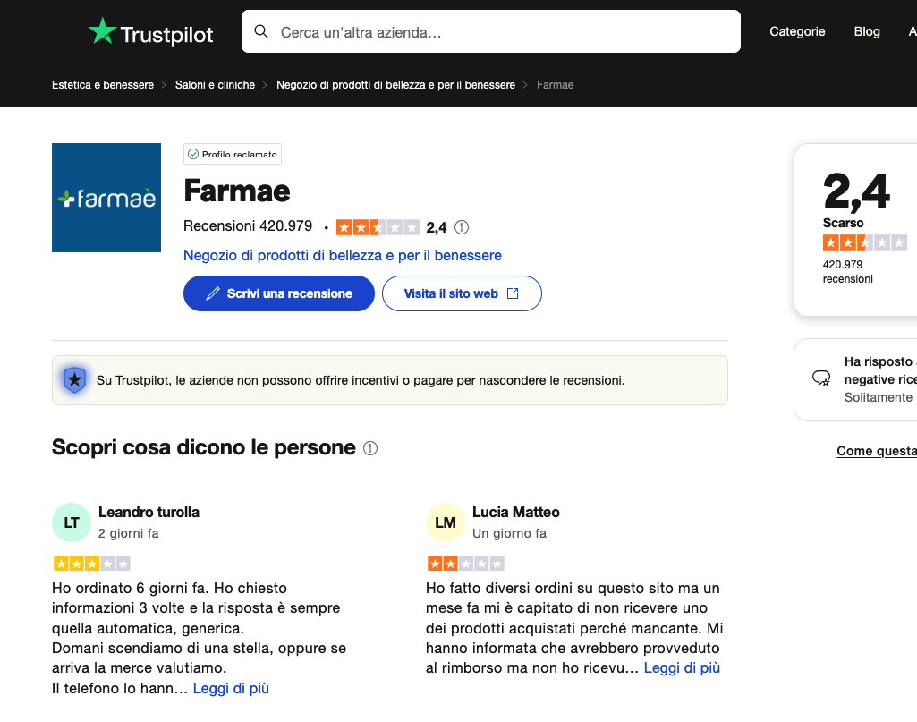 Se hai già contattato Farmaè senza ottenere risposta, lasciare una recensione su Trustpilot può essere un modo efficace per ottenere una soluzione più velocemente.